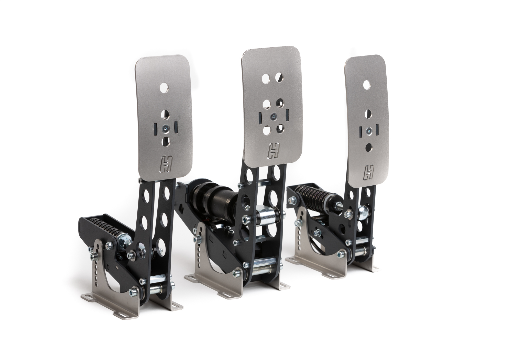 A strong, compact and highly adjustable design with custom electronics and powerful SmartControl software. Fully adjustable pedal geometry and force (120kg load cell with up to 65kg of actual force at the brake pedal plate), limitless configuration options in the software.